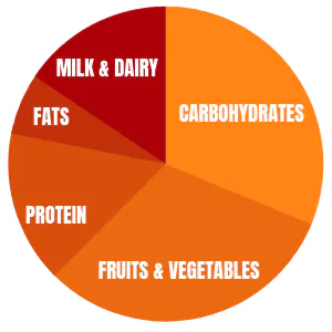 This includes all of the five major food groups: Carbohydrates, Fruits & Vegetables, Fats, Protein and Dairy.