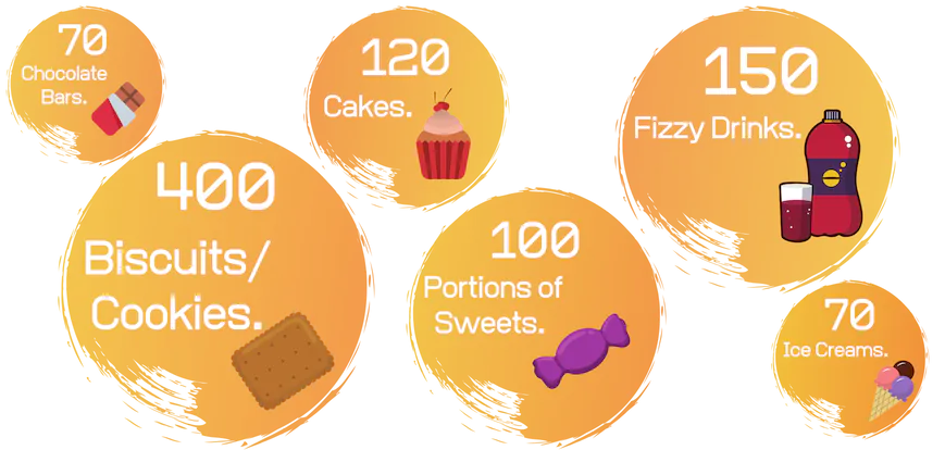Many children get 50% of their daily intake of sugar from unhealthy snacks. 30% of this comes from drinks, such as fizzy pops and juice cartons.