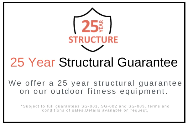Therefore, as a result of this we are providing the below guarantees on all of our outdoor gym equipment.