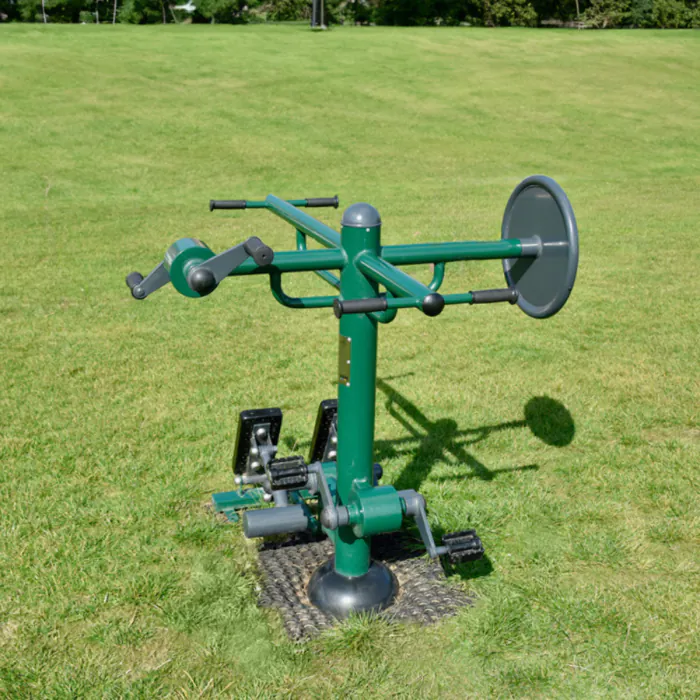 The Inclusive Multi Gym is accessible from all 4 sides with the following exercises: Tai chi Disc, Arm Bike, Foot Bike, Foot Compression Pedals. This spacesaving product is ideal for social interaction and great for wheelchair users who experience lower body mobility. The product is designed to be used by all and is suitable for wheelchair users.