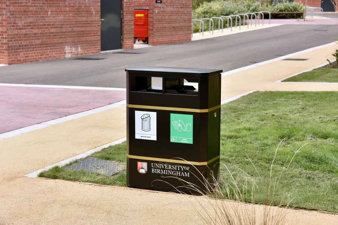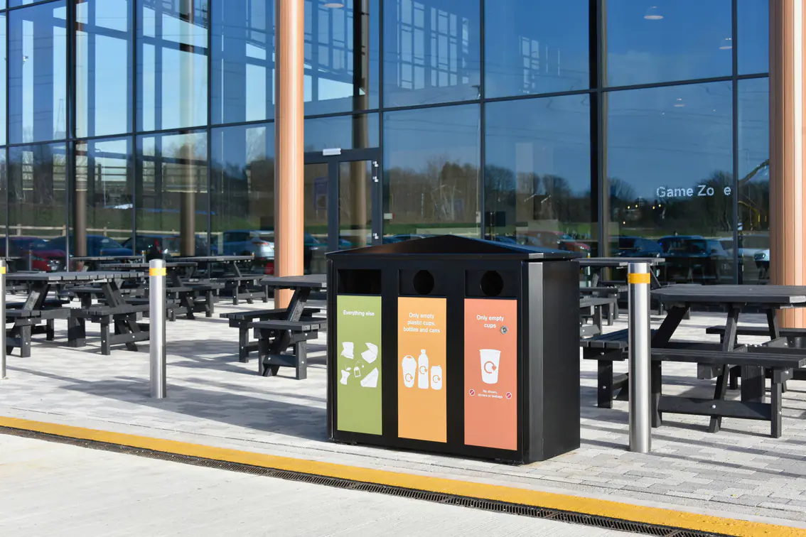 Another key factor is the type of waste the bin needs to accommodate. General waste can be handled by standard models with wide apertures, but recycling schemes require a more structured approach. Multi-stream bins with colour-coded or clearly labelled apertures help users separate materials such as plastics, cans, and paper. Food waste bins often need sealed lids and removable liners to manage odours and prevent pests, while more specialist requirements, such as dog waste or cigarette disposal, demand purpose-built units.