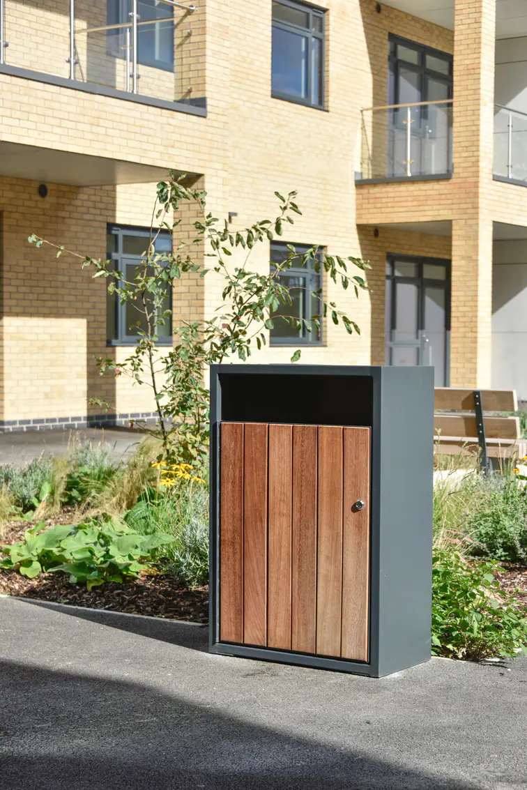 Steel and stainless steel bins are chosen for their strength and durability. Powder-coated mild steel offers excellent resistance to knocks and vandalism, while stainless steel provides an additional layer of protection against corrosion, making it suitable for exposed outdoor environments or coastal areas where salt in the air accelerates rust.