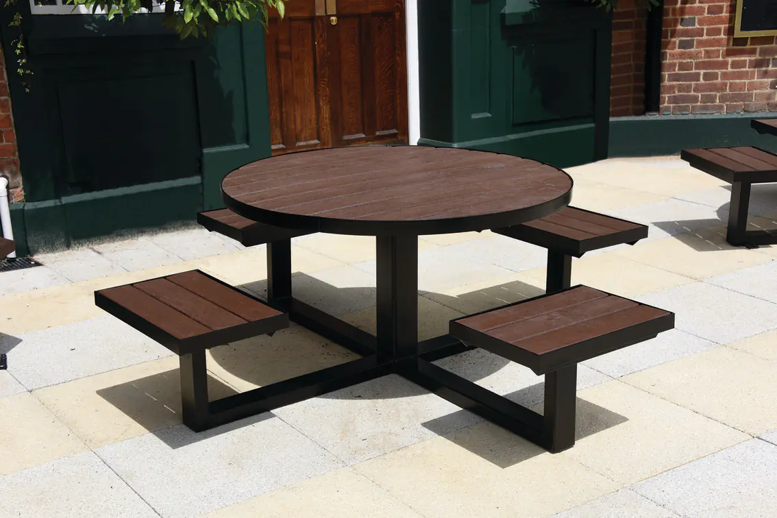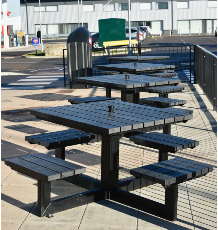 Circular and multi-sided picnic tables prioritise social interaction and equal seating distribution. By eliminating the linear aspect of rectangular tables, these designs encourage conversation and group cohesion, which explains their popularity in hospitality settings and communal dining areas.